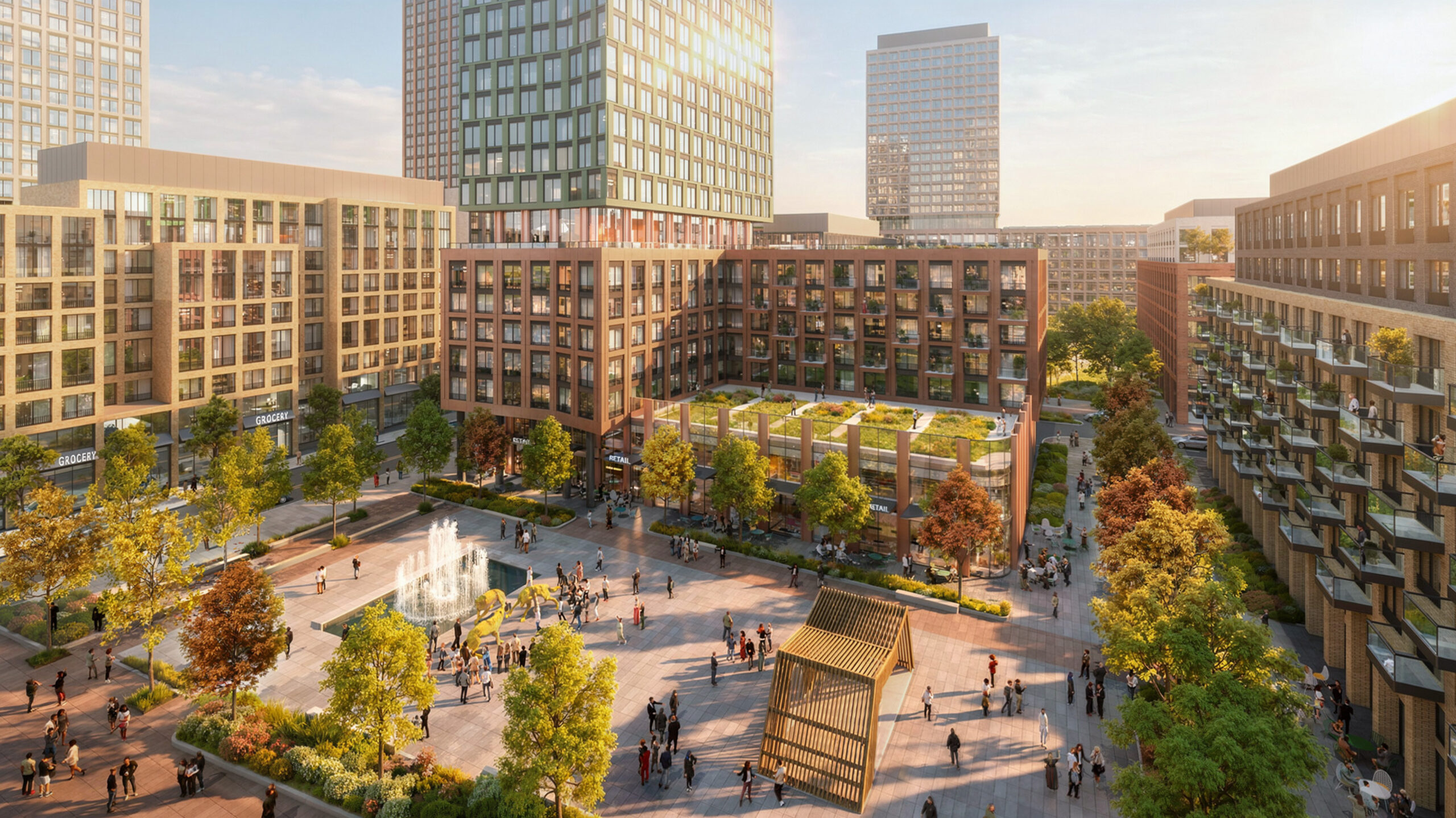The proposal includes a flexible mix of homes to accommodate evolving needs and population growth, from low-, mid- and high-rise. The unit mix will include one- to- three-bedroom homes, as well as integrated townhomes.